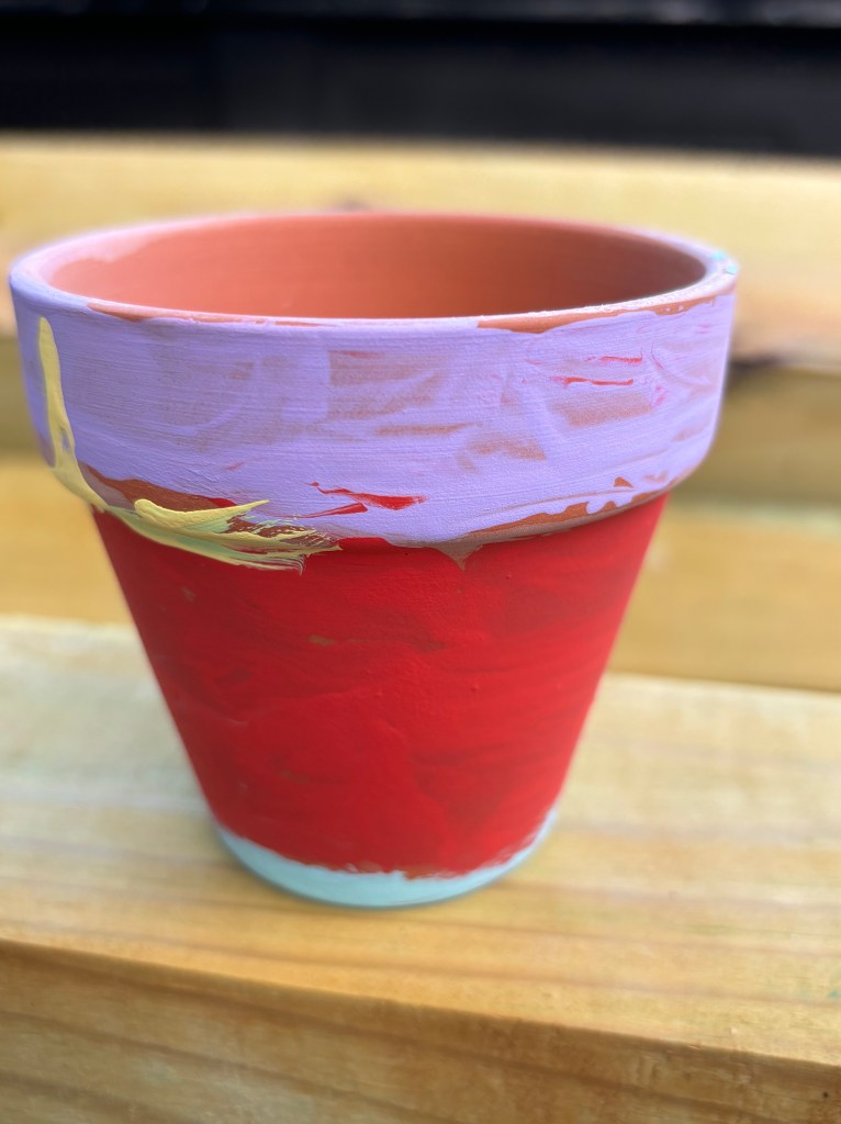Have your child pick out some colors to paint the pot. They can do any design they want on the pot. They can even write something on the pot. Paint only the outside of the pot.