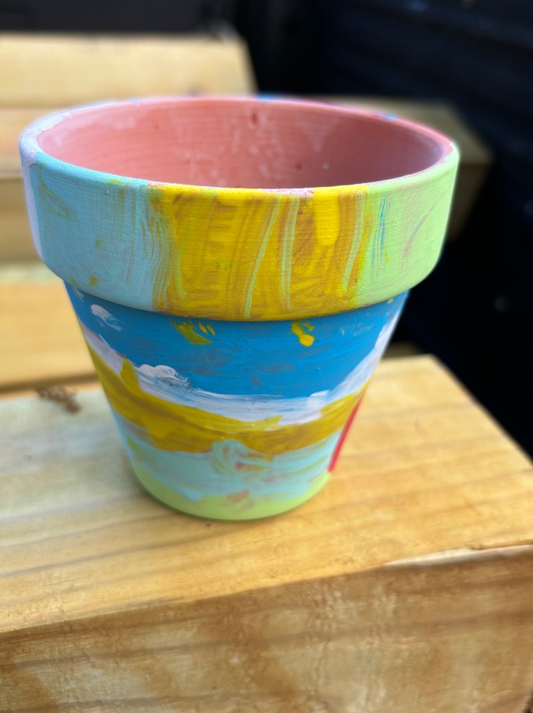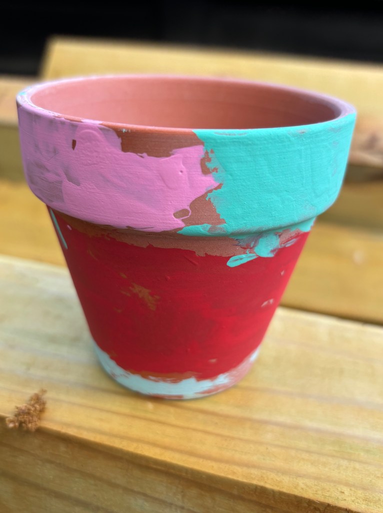 Once the pot is complete, you can put a plant in the pot to add more color for your mom.