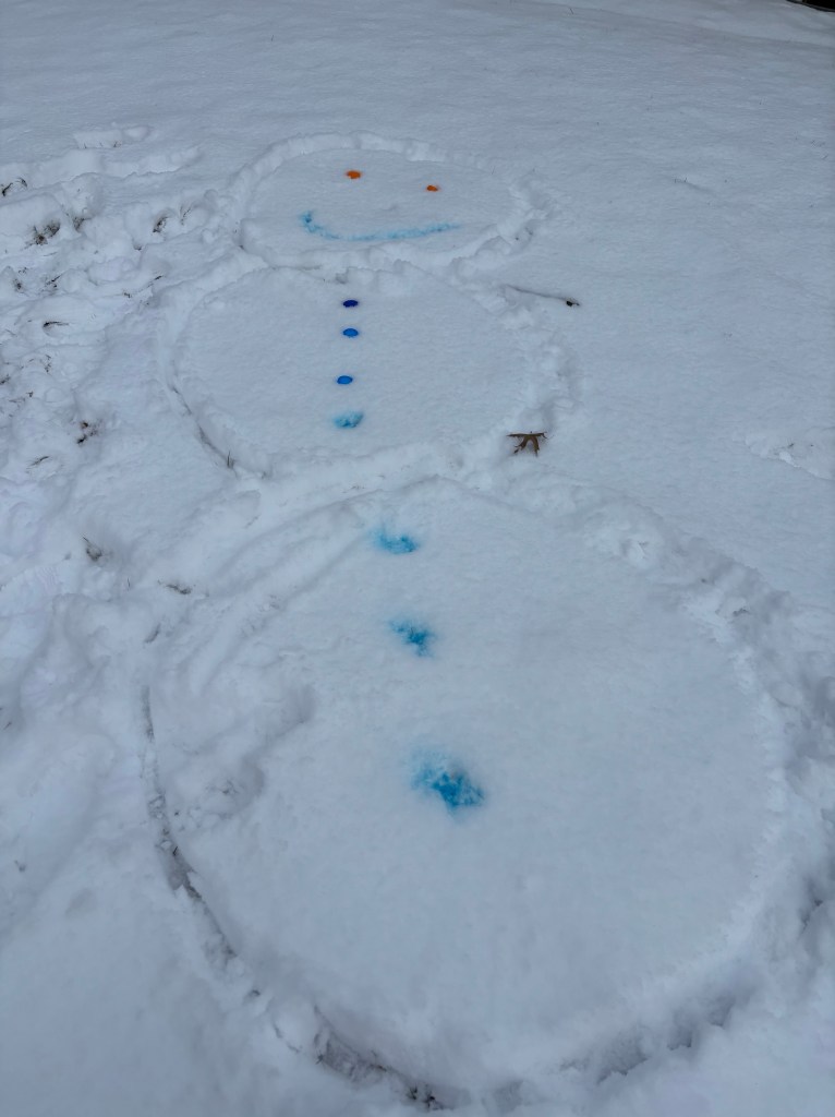 - Use the stick to “draw” or dig out the circles more deeply into the snow