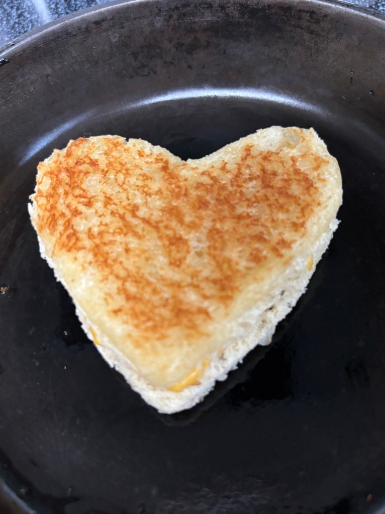 - Put Velveeta between the 2 pics of hearts with the butter or mayo sides on the outside.