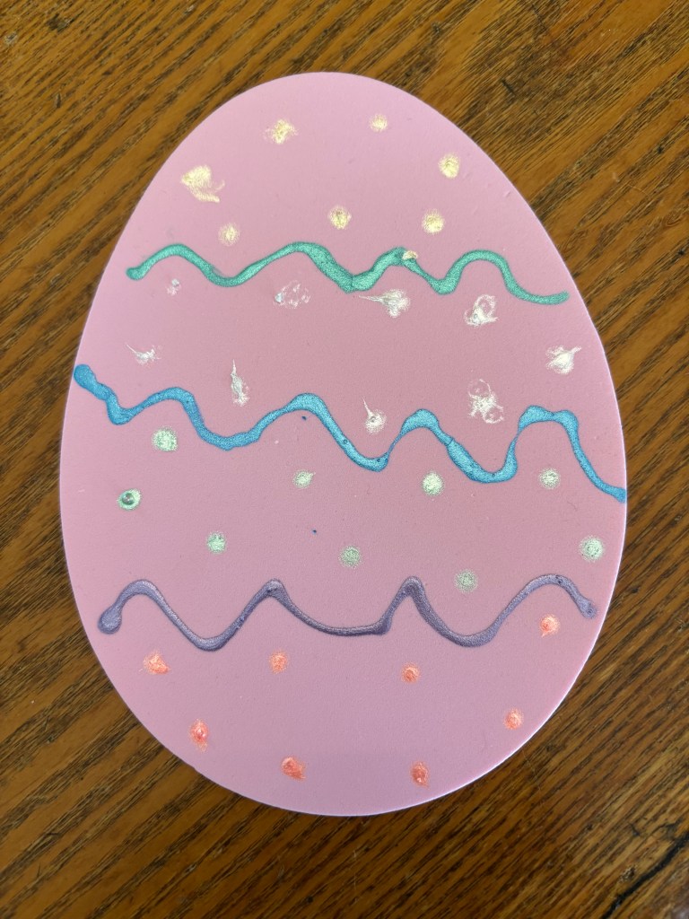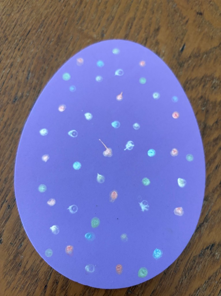 - Once you have your egg shape finished, the fun part starts! Adorn your egg with glitter glue in different hues. Let your imagination run wild!